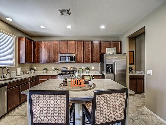 Check out this IMMACULATE 4 bedroom 3 bath home with a DEN & LOFT! Spacious open floor plan with eat in kitchen & separate dining area. Kitchen has plenty of storage, Butlers Pantry, Upgraded cabinets, quartz counters, 18 inch tile flooring, gas stove! Large master bedroom with huge walk-in closet. Plenty of outdoor space, mountain views, N/S exposure, with room for a pool. Del Rio Ranch is a great new clean and quiet community, close to greenbelt, playgrounds, walking and biking paths. Conveniently located near shopping, great schools, medical facilities and freeways! Perfect family home in a great location!!