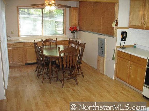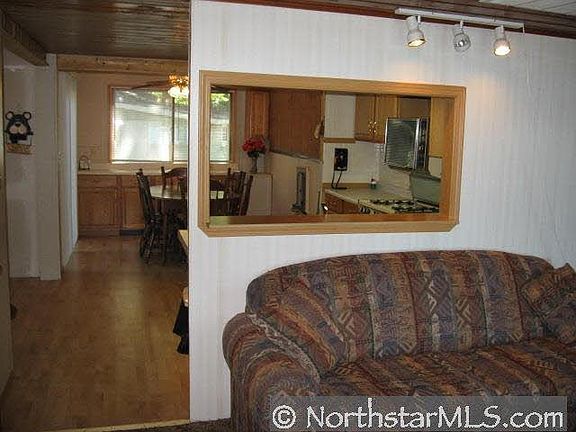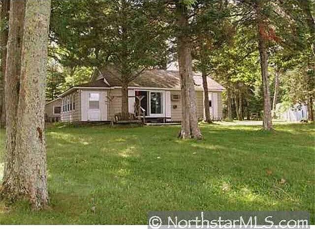 Cute older cabin w/110' of level frontage. Needs some fixing up and TLC. Three bedrooms, one bath, spacious kitchen/dining area. Lake view from the living room. Detached one car garage with workshop area. Big front yard lake side.