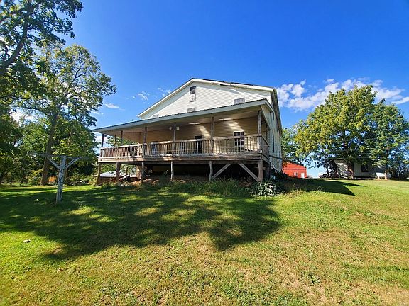 Here's your homestead! This 28 ac m/l tract features a 3,200 sq ft 2-story farmhouse with an open floor plan, big rooms, sprawling front deck & full basement. The main level features spacious kitchen & dining areas, a handy mudroom/entryway, and the master bedroom. Upstairs you'll find 6 bedrooms, and the full attic offers plenty of storage. The property includes a 40x64 metal utility shed new 6 years ago, with concrete floors & upstairs loft storage. A large livestock barn includes a goat milking parlor & hay storage. Another approximately 40x64 metal utility shed includes workshop space and plenty of parking with large sliding doors. If you are looking for a turnkey sawmill operations, the sawmill shed is included with this property. (Please Note: the sawmill equipment being sold separate.) There are several other smaller sheds, chicken coop and grain bin that would convey.