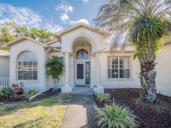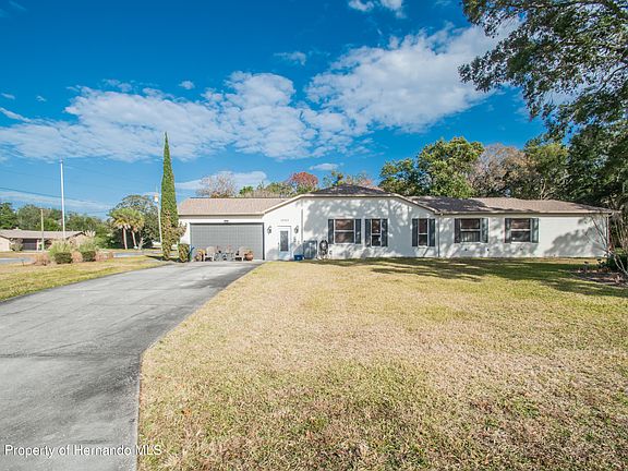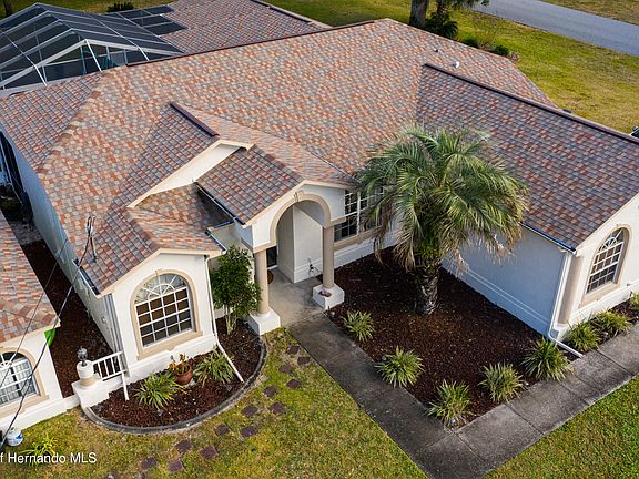 SITUATED on a .60 acre, corner-lot, this home is sure to impress. The main home offers 4 bedrooms, an office, and 2 full bathrooms at 2044 sqft & features extra living space from the converted two car garage, for a total of 2584 under roof living space. Entry foyer walks into the formal living room and overlooks the pool through sliding glass doors. Kitchen features granite countertops, newer stainless steel appliances, lots of cabinets, breakfast bar and nook. Tile floors cover the kitchen and family room w/ laminate wood floors in foyer, formal living areas and all bedrooms -- NO CARPETS! Master-suite offers sliding glass doors to the pool, walk-in closet, dual sinks, granite counters, garden tub and separate shower. Inside laundry room. The oversized, private pool was resurfaced in 2018 & comes with child safety fence. Roof was completely replaced in 2018. Other exterior features include: well for irrigation, large paver seating area and detached two car garage w/ brand new door opener. Immaculately maintained, this home is ready for you to take occupancy! REPAIRED SINKHOLE 2020 (Hernando County Permit #: 1406036). Make an appointment to see this one today!
