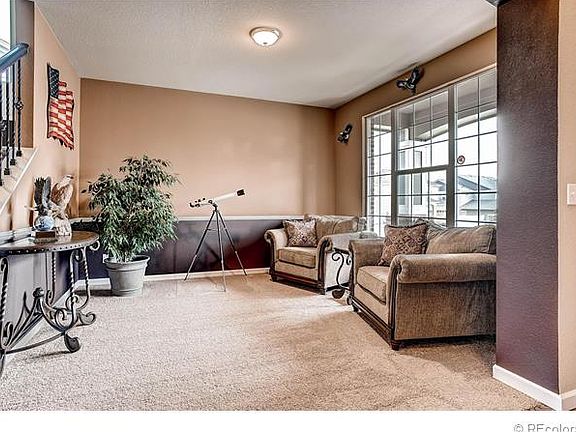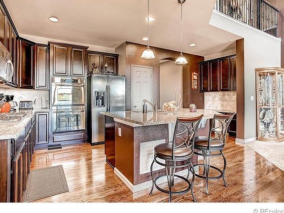 Beautiful almost new 3 bed, 3.5 bath family home in Horseshoe Ridge. This one has it all, stainless appliances, gas cook-top, kitchen island, 42" cabinets, 6 panel doors, hardwoods, double oven and more. Fabulous designer touches you will love. Finished basement features a media room, bar, rec room and is wired for surround sound. convenient mud room off of garage, covered porch and great back yard with custom patio. Great game room for the kids with a "secret" fort. Master suite with 5 piece bath and walk in closet. Amazing views, backs to walking trails, 2 furnaces, 2 A/C units and a 50 gallon hot water heater. Watch the spectacular Parker fireworks from the comfort of your new front porch.