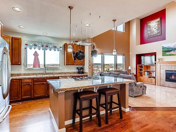 Gorgeous two story open concept home, backing open space. Main floor study, formal dining room, gourmet kitchen with granite counters, stainless steel appliances, gas cooktop, maple cabinets with custom roll out drawers, vaulted ceiling in great room with wall of windows, hardwood floors and tile flooring, custom tiled stair treads, two decks, partially finished walkout basement ready for your completion, stunning views of open space, walking trails, and east Parker. A/C, two furnaces, Water softener/RO system, hot tub, 3 car tandem garage, custom blinds, fireplace with blower, washer and dryer included. This is a must see!