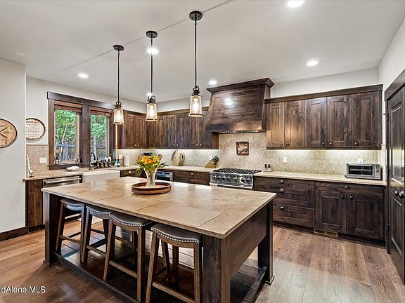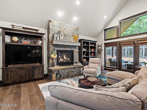 Nestled in the back of the highly sought after Forest Ridge Estates community is this Spacious 3660 sq ft home Boasting 4 Beds, 3.5 Baths plus bonus room and office! Open floor plan w/beautiful designer touches throughout. Open gourmet kitchen with a farmhouse sink, travertine countertops, Viking stainless steel appliances, and a large entertainer's kitchen island. Floor to ceiling gas fireplace w/custom built-in cabinets. Easy maintenance private BACK yard with no rear neighbors, covered patio, fencing & front faces conservation area. Great floor plan w/private primary suite wing w/luxury shower w/jets & quiet office. RV & boat parking. Room for SHOP (shop lot) on .43 acre. Come make it your North Idaho Retreat!