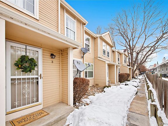 Welcome to this charming 2 bedroom, 2 bathroom townhome in the desirable Front Range Village. The main floor features a spacious living room with a cozy fireplace and modern wood flooring. You will be sure to enjoy the updated kitchen with stainless steel appliances, farm sink, and custom backsplash tile, which also opens to a private patio. Upstairs you will find the master bedroom, an additional bedroom, and a full bathroom that has been completely remodeled. This move-in ready home has been updated throughout, offers a detached garage with additional storage space, and a newer water heater and thermostat system. Ideally located near parks, dining, public transit, highways, and shopping. Don't miss this incredible opportunity to make this wonderful home yours!