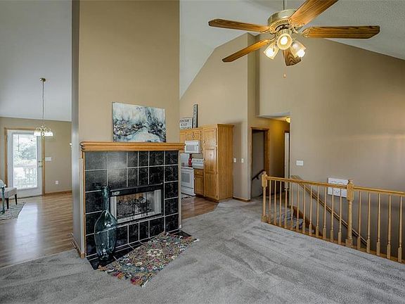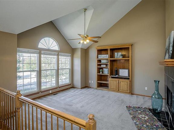 Exterior trim being freshly painted soon! Located in a cul-de-sac, this raised ranch has an open floor plan with enormous vaulted ceilings, and loads of natural light! Ample room to socialize and watch the Chiefs around the double sided fireplace. The kitchen has a wonderful breakfast bar, and dining area. A walk-in pantry is a wonderful bonus! Walk out onto the upper deck for grilling. The master is spacious, with trey ceilings, and a walk-in closet. The master bath has separate tub/shower, and double vanity. Two additional bedrooms on the main level, with a hallway bath. Laundry is conveniently located on the main level, as well. The walk-out finished basement has additional living space,with wonderful natural light as well, along with the 4th bedroom, and full bath! Level back yard. Extra large garage.