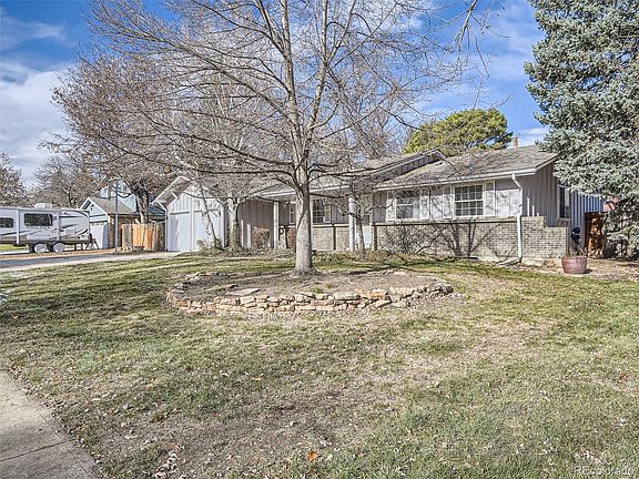 Charming, south-facing, 4 bedroom/3 bath Ranch style home in one of the nicest neighborhoods in Arvada. Stylishly updated kitchen and baths. Gleaming hardwood flooring in main floor bedrooms. Finished basement with plenty of room for entertainment, guests, etc. Enjoy the peaceful tranquility of the private fenced yard with beautiful mature landscape from your spacious covered patio. Bonus enclosed room off the back patio offers endless opportunities. Oversized garage with handy work area. Extra wide driveway (33' wide & 30' deep) and fenced RV parking. Welcoming front covered patio. Great location! Just a short walk to Van Bibber Creek Trail, incredible open space, the APEX Center parks, and more! This gem won't last!