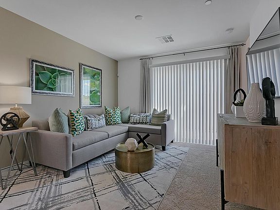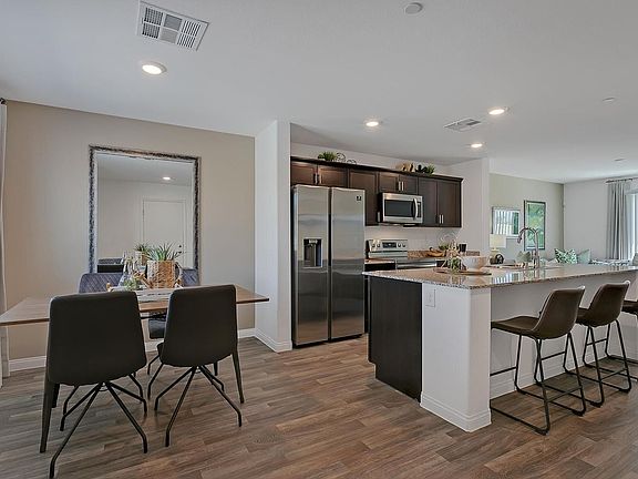 The Granite Plan 120 located at Mosaic measures 1,372 square feet with 3 bedrooms, 2 baths, 2-car attached tandem garage and a rear private patio.. This open design provides the best use of space and comfort. There are so many included features (appliances, blinds, Ring® doorbell, Kwikset® smart lock) to just name a few. And then there are the resort style amenities like 3 Pools, Dog Park, Playground, 24/7 Roaming Security and so much more.