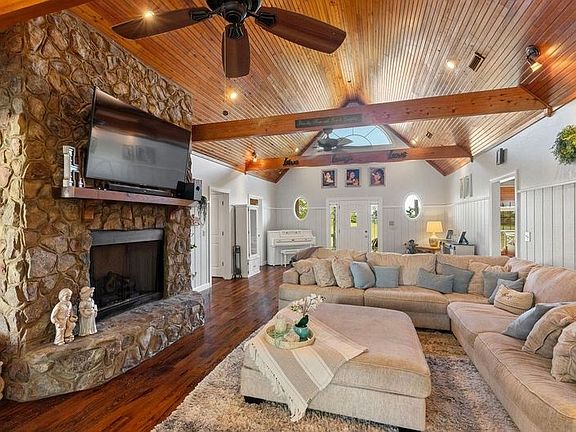 Headlands hidden gem- a picturesque farmhouse on 10 tranquil acres, perfect for those seeking a peaceful quite lifestyle. This 3843 square foot home located in the coveted Headland School zone, features beautiful tongue and groove ceilings throughout the main living space. Enjoy your morning coffee from the dining room or screen porch while looking out over the countryside just beyond your saltwater pool. This 4 bedroom 3 bath family home boast the perfect floorplan that includes a large sunroom just off the master suite, the perfect space for a home gym or reading area and a basement storm shelter. This home also offers a 2 1/2 car garage with large storage room and 220 hookup. The upstairs is a dream area for kids, teenagers or the college student still living at home. Approximately 1000 square feet to include a bedroom, bathroom, and living area. Just bring a fridge and they are all set! Additional information: Roof replaced in 2024, pool pump and salt cell replaced in 2022, sand and filter replaced in June 2024. Pool also has a new LED multi color light. Home is wired for sound system, has 2 HVAC units, tankless water heater and a large outbuilding with electricity and water line ran to it. There is a 250 gallon underground propane tank for the tankless water heater, gas fireplace and range.