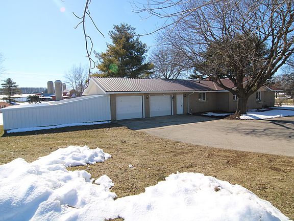 A most unique property on 5.43 acres zoned AG with a natural spring fed half acre pond stocked with a variety of fish. There is a small building near the pond with a dock that was used as the “party house”. This 4-bedroom home was built by the original owner in 1974 with a variety of recycled materials and an exterior made of concrete panels covered in Janesville pea gravel which makes for excellent insulation. The roof is recently installed metal. It offers over 3100 sq ft. of living space which includes a large, vaulted living room, with a wood burning fireplace and an expanse of windows facing the pond, a large eat-in kitchen with walls of storage, 3 bedrooms, main level laundry and 2 full baths; one of which offers a handicap accessible walk-in shower-no-lip situation. The lower level features an additional bedroom, ½ bath, large rec-room with walk-out, a second rec-room space, workshop and storage space. There is an attached 2 car garage with an additional lean-to type storage area for lawn equipment, etc. HSA home warranty policy included. No central air though the sellers will consider a credit for installing a zoned system. The property was recently given a new PIN after the land division.