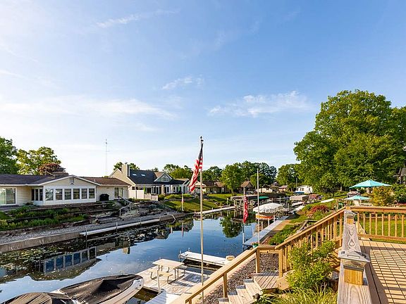 Lovely 5 bedroom, 2.5 bath, close to Johnson's Bay. Large great room with fireplace and 3 season's room on the water. 70 feet of channel front, paved parking for 8-10 cars. 2 fireplaces, new seawall on a deep channel.