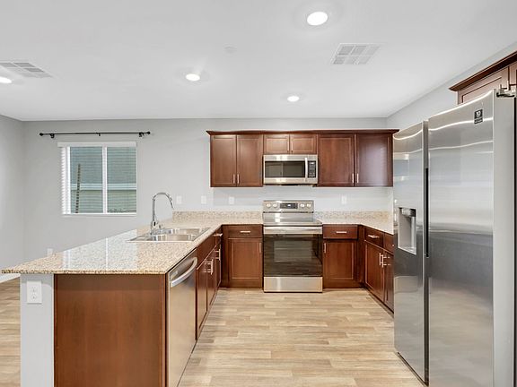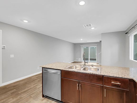 Welcome to this stunning almost new townhome. With three spacious bedrooms and two and a half bathrooms this home has the perfect amount of living space, attached 2 car (tandem) garage, granite counters in kitchen, breakfast bar, and upgraded appliances. The absence of on-street parking guarantees a clutter-free neighborhood. Take advantage of the large community pool, perfect for those hot summer days! Additionally, there is a dog park, 3 community pools, and a basketball court. The upgraded luxury plank flooring throughout the main living areas gives the appearance of a spacious living room/kitchen, while the plush upgraded carpet upstairs provides a cozy retreat in the bedrooms.
