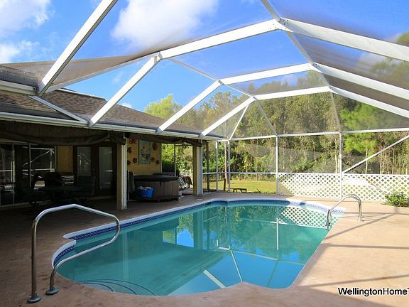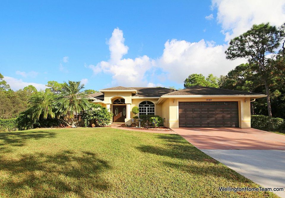 Beautiful Pool Home for Sale in West Palm Beach Florida! Situated on a private 1.15 acre lot this fully fenced one story home features 4 Bedrooms, 3 Bathrooms and a 2 Car Garage. Upon entering the double doors you will be greeted by a open foyer that flows seamlessly into the formal living room and dining room. Perfect for entertaining the formal areas are open to one another and feature wood floors, vaulted ceilings and a sliding glass door that leads out to the covered and screened patio and private swimming pool. The kitchen offers wooden cabinetry, granite countertops, a tile backsplash, breakfast bar and pantry. The kitchen overlooks a breakfast nook and family room, which also has vaulted ceilings, hi-hats and a french door that leads out to the patio area. The master bedroom features wood floors, a large walk-in closet with built-ins, a second walk-in closet and french doors that lead out to the covered patio. The master bedroom also has a private bathroom, complete with dual sinks, roman tub and separate shower. The second and third bedroom are a nice size and share a guest bathroom while the forth bedroom has a private bath, wood floors and private entrance. Additional interior features include a laundry room with wooden cabinetry for extra storage, surround sound wiring in the family room and covered patio. Exterior features include a solar heated swimming pool with a brand new diamondbrite finish (October 2015), 24x8 kennel with concrete runs, a shed for additional storage, accordian hurricane shutters and portable spa. The roof was replaced in 2006, the AC was replaced in 2011 and the water softener was replaced in 2012. Bring your horses to this Acreage Pool Home, which is zone for agriculture, but is only minutes away from Northlake Boulevard. Shopping , dining and entertainment are only 10 minutes away and there is easy access to the Florida Turnpike and I-95. This home is not a short sale or bank owned home For more information, photographs and measurements visit: http://wellingtonhometeam.com/listings/12167-75th-lane-n-west-palm-beach-florida-33412/ or call 561-333-0446