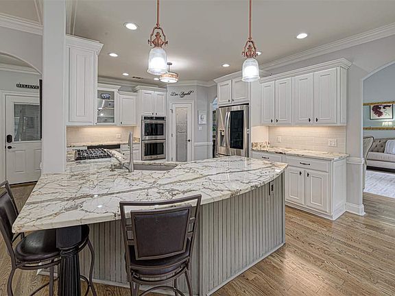 Stunning Southern Serenity Quality Custom Built Home. Perfect floor w/ primary bedrm, luxury master suite and guest dwn + full bath; Addtl 4 beds up, plus 2.5 baths. Spotlighted is the renovated kitchen w/ imported granite slab, breakfast bar, 5 burner gas stove, custom drawers, new gleaming hrdwds throughout the dwnstrs. Incredible renovated primary bath boasting soaker tub, dble granite vanities, two walk-in closets, and walk through shower, dble heads. Home situated on 2 lots w/ 3 car garage.