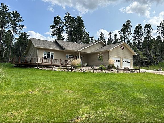 GOLF ANYONE?! Welcome to your golf enthusiast's paradise! Just a short drive on your golf cart will lead you to the entrance of the beautiful Rocky Knolls Golf Course. Nestled in the beauty of nature, this property is also conveniently close to USFS lands, providing endless hours of recreational opportunities. Immerse yourself in the tranquility of this private and quiet location surrounded by beautiful rock formations and mature trees. The custom-built home features an open floor plan, offering one-level living for your convenience. The lovely kitchen showcases hickory cupboards, and the amazing laundry room/mudroom adds a touch of practical luxury. A new 12X24 addition with bright and warm wood walls and ceiling awaits your personal touch—use it as a sunroom, craft room, studio, den, or anything your heart desires. For the hobbyist or off road enthusiast, a fully finished detached 24x36 3-stall garage/shop large enough to hold a fleet of powersports toys. The building is equipped with 220 electric service, electric and gas heat as well as a covered back patio. Situated very close to the charming town of Custer, you'll have access to great shops, restaurants, an active art council, K-12 school, a new hospital, and all the well-known attractions and parks that the Black Hills offer. This property is the perfect base for your Black Hills adventures. Don't miss the opportunity to make this your dream home—come take a look! https://www.rockyknollsgolfcourse.com/