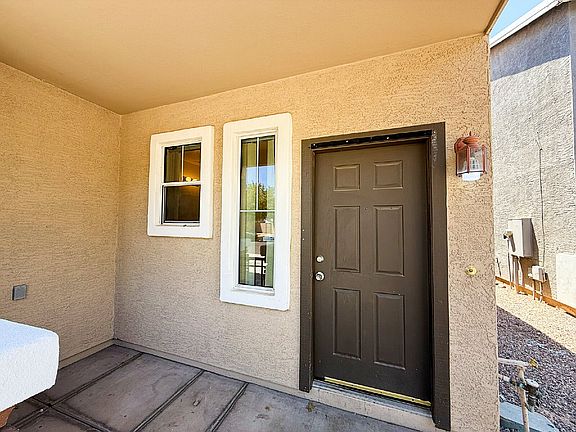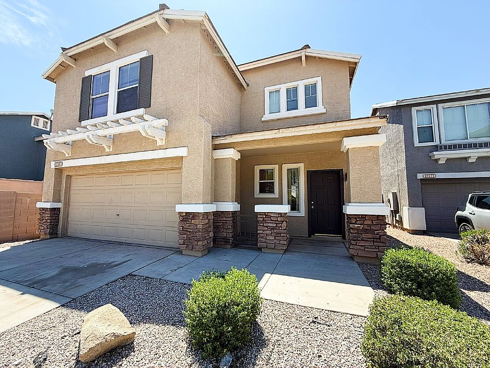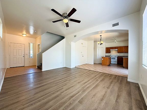 Welcome to this beautifully updated 3-bedroom, 2.5-bathroom two-story home offering 1,534 sq ft of comfortable living space. Freshly painted throughout and featuring brand new luxury vinyl plank (LVP) flooring, this home is move-in ready. The main level includes a spacious living room and an eat-in kitchen equipped with an electric range oven, dishwasher, disposal, and plenty of cabinetry. Upstairs, you'll find all three bedrooms, a bonus room perfect for a home office or playroom, and convenient inside laundry hookups. Enjoy Arizona evenings under the covered patio with a low-maintenance desert front yard. This home combines style, functionality, and location a must-see!