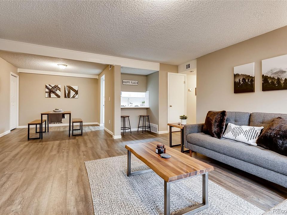 Welcome home to this remodeled condo with updates everywhere! High-end finishes for an affordable condo unit. The kitchen boasts quartz countertops, new stainless appliances, new shaker cabinetry and tile. Luxury plank vinyl flooring throughout makes this concept modern and the floorplan flows into the remodeled bathrooms. Bedrooms are sizeable. RTD center is across the street with easy access to I-25 and plentiful shops and restaurants nearby make this a great location. HOA includes fitness center, pool, recreation area with free wifi, playground, pond, and BBQ area. HOA covers water, snow removal/lawn maintenance and exterior maintenance. A fantastic new home, it won't last long.