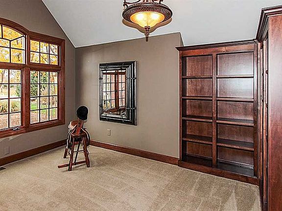 Windpointe brick 2 story main flr master BR. Den/Lib w/hardwd floors & cathedral ceiling, daily work office off kitchen. Granite countertops remodeled. Master bath w/new tile, tub. Year round sun rm & main flr 36' deck overlooking private back yd. Hearth room w/see through fireplace. Walk out bsmt w/5th BR, full bath . 33ft patio, storage area. Large heated garage built w/high ceiling for indoor bball court. Newer roof & lower level furnace .All this on one of the best 1/2 acre lots in Carmel