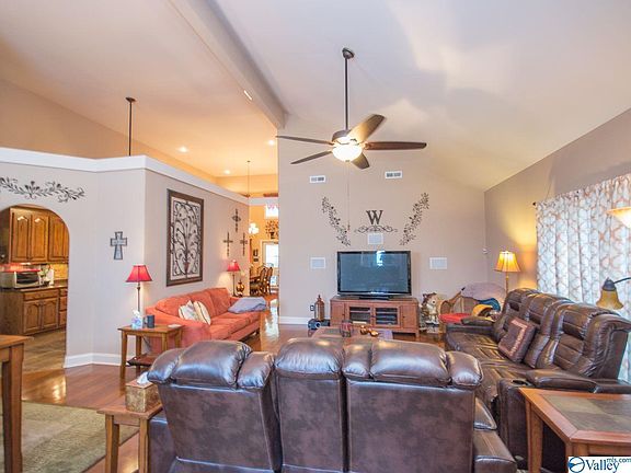 Well maintained home on a nice corner lot. This open floor plan features a unique design and soaring ceilings throughout. The spacious living area features hardwood floors with tall ceiling, the kitchen has custom cabinets with stainless steel appliances and gas cooktop, isolated master suite with private bath and walk-in closet. The spare bedrooms are spacious and share a hall bath. This home has a sunroom, deck, storage shed, storm shelter in garage and much more! Priced for action!