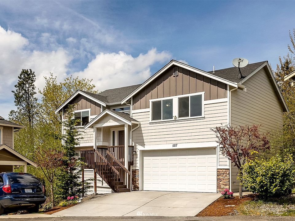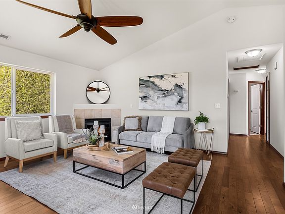 Flooded with natural light, this quite neighborhood house offers an ideal floorplan with high ceilings & generous windows; Over $50k upgrade were added at the build. Open concept with spacious kitchen featuring large quartz countertop spaces with breakfast bar; comfortable dinning area flowing to the cozy living room w/ a fireplace. Nice oversized ceiling fans, real hardwood floors throughout the house. Master suite features a walk-in closet and ensuite bath. Lower level family room is a true oasis w/ an outdoor deck and a multi-use space for game nights/office or gym. Another 3/4 bath on the lower level. 2 Car garage with additional storage area and a door to the side yard. Move-in ready - new fresh exterior and interior paint!
