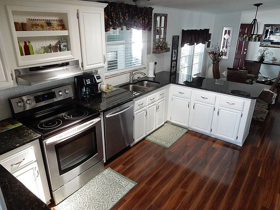 Looking for a spacious home to enjoy the Florida lifestyle, look no further. This home is located in a very quiet 55+ community is in a safe and desirable area that is pet friendly located close to I-75. Gorgeous large 1991 Palm Harbor 26' X 56' furnished 3 bedroom 2 bath doublewide. Beautiful laminate floors throughout, baths tile flooring. Open concept kitchen has ample updated cabinets, stainless steel appliances, and granite countertops. There is a breakfast area for that morning cup of coffee as well as a nice dining area for entertaining. Sliders off dining area lead to beautiful carpeted air conditioned lanai for more living space. Large master bedroom boasts remodeled en-suite bath with walk in shower and updated vanity with quartz countertop and double sinks. 2nd bath has tub/shower combo with updated vanity and granite countertop. Roof is only 6 years old, washer 1 year old, and A/C is 5 years old. This is a great home for entertaining and enjoying the Florida lifestyle. Come tour this home today before it's gone!
