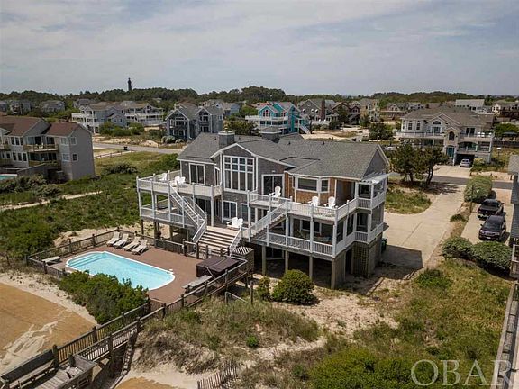 This spectacular oceanfront home graces the northern Corolla beaches! Tucked away in the lovely Ocean Hill community, this is beach living at its best! Beautiful ocean views from every room on the mid and top levels! A very spacious three level, six bedroom home with three separate living areas offers plenty of room for family and guests. The main living area on the top floor boasts a gorgeous brand new custom kitchen with quartz counter tops, stainless appliances, beautiful cabinetry built by Cozy Kitchens, and an oceanfront counter with seating to enjoy the views! Gather with friends around the large dining table, and enjoy the comforts offered in the roomy living area with built in shelving, oversized tv for the big games, and a cozy gas fireplace. High ceilings and lots of windows capture the natural light. The upstairs also offers two large master suites and a bright second sitting area/office. The middle floor has a large den with wet bar and is central to four roomy bedrooms, and is a great spot for lounging, reading, and game playing! Two of the bedrooms on this level are master suites. All six bedrooms have an ocean view and a sliding door to an oceanfront deck! The ground floor is an exceptional game room. Play a great game of pool, try your hand at poker, or relax in comfort on the big comfy couch! A kitchenette with full refrigerator, microwave and dishwasher accommodates this floor and is great for supplying the pool and outdoor areas! Multiple large closets and storage areas work well for second home owners providing secure space for owner storage. And decks! Two levels of decks offer great outdoor living spaces to enjoy the beautiful Atlantic ocean vistas! Put this oceanfront home on your MUST SEE list!