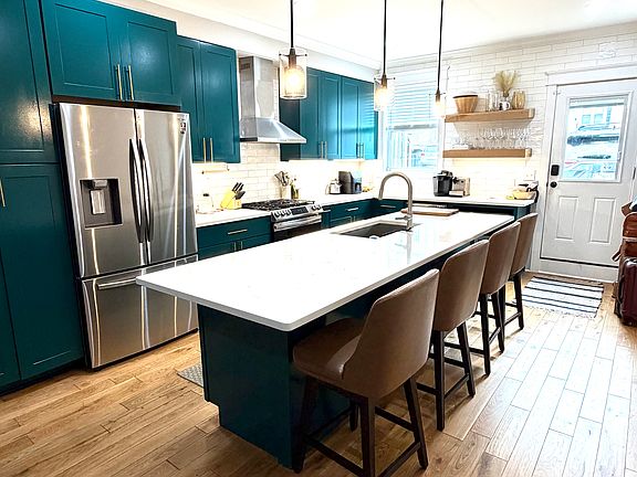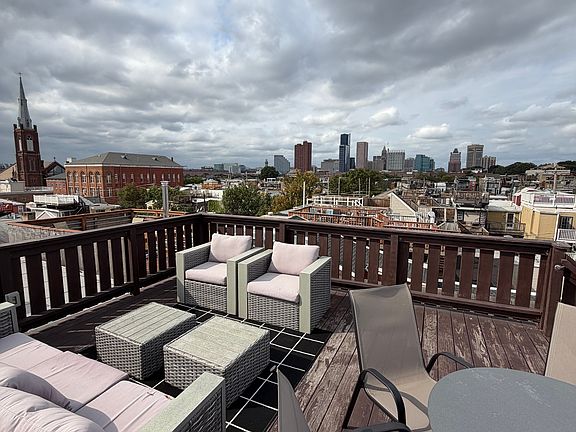 All three bedrooms are on the upper levels of the house and have their own newly renovated bathrooms, which makes the house perfect for roommates or a family. There are also TWO BONUS ROOMS - a finished carpeted basement, and a large rec room on the deck level with a wet bar. The house has hardwood floors throughout, lots of natural light, and a rooftop deck with full city skyline views. The large parking pad can fit two cars, and there is generally lots of permitted street parking available as well. Located on a central but quiet street - it's a great location and easily walkable to all areas in Federal Hill!