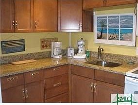 Savannah Beach & Racquet Club - updated condo. Kitchen with granite counter tops. Bedroom wall is opened up to accommodate a King size bed. Bunk bed in hallway still in place. Condo is sold furnished. Condo has been on long term rental for the past few years, but would make a wonderful vacation rental (STVR is approved for SBRC). Complex offers private beach access, pool, tennis courts and pickleball courts. Walking distance to many restaurants and shops on the north end of the island. Time to buy your beach condo!!! Sold furnished. Update kitchen, laminate floors.