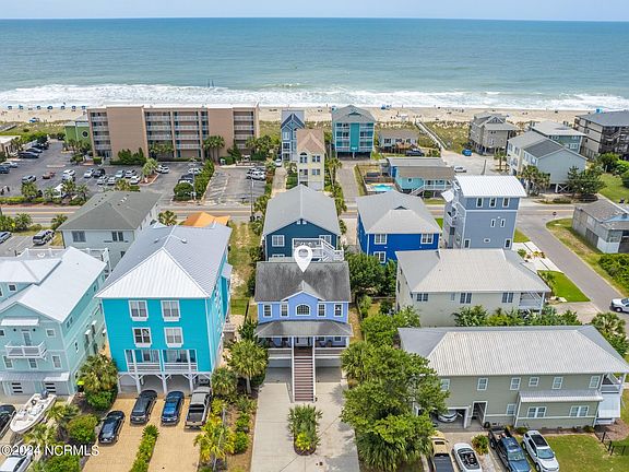 Beautiful, spacious, and pet-friendly 4-bedroom home with attached studio one block from the beach! sleeps 8 off season as this rental is for the top two floors and not the studio on the ground floor - monthlies in progress starting mid Oct -- Relax on the rooftop deck and enjoy an unsurpassed 360 view of the ocean and surrounding area. This property is one block from the Ocean Grill and Tiki Bar and a short drive to the Carolina Beach Boardwalk. Bring your Electric Vehicle! A 240-volt charger with J1772 plug is available for use. Additional features are an outdoor shower, storage area for beach accessories, washer and dryer, garage, Roku, and studio with its own mini kitchen and full bathroom. Sleeps 10 in season -- off season the downstairs unit rents separately - upstairs has 4 bedrooms. Walk to the Ocean Grill and Tiki Bar on the beach one block away.