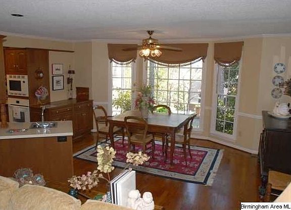 Charming front porch welcomes you to this beautiful home. Exciting open kitchen/keeping room PLUS sep sunroom, dining room and living room/study- Space for everyone! Well kept custom built home in very popular neighborhood (zoned for Vestavia East Elementary) Updated kitchen with tons of cabinet & counter space opens to family room and sunny eating area . Large bedroom and full bath on main level PLUS HUGE master with updated bath (sep shower/ garden tub/BIG custom CLOSET) & three other bedrooms upstairs, all with lots of space & great closets. Don't miss the downstairs den (think playroom or media) with adjacent full bath. All this plus storage in large walk in attic & basement which has workshop. Main level garage, plenty of extra parking. Enjoy the privacy & view of the creek from the swing on the back deck. Extra wide lot with room on either side for playset or garden.