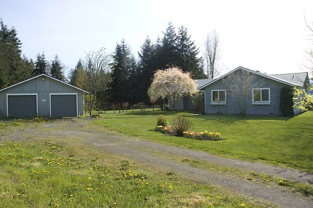 What a package! One story well maintained home on 5 secluded acres with fantastic Olympic Mountain views and sweeping valley views. Room for horses, & trails nearby as property backs thousands of acres of forest land. Sunny location w/great garden space, producing fruit trees and several types of berries. Property development was well thought out as garden space sits to the south & home is perched to take advantage of the view. New roof was installed in 2009 & new heat pump in 2010.