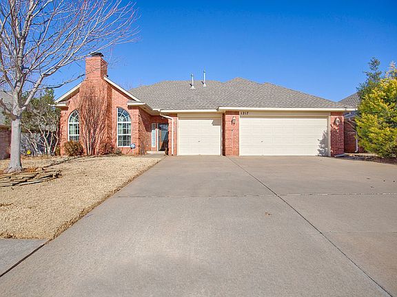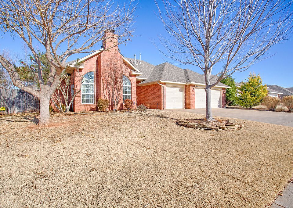 Don't miss out on this true 4 bedroom, 2 dining area, 3 car garage home in Edmond Schools. This beautiful home is perfect for family gatherings & entertaining. You will love the large kitchen! It offers tons of cabinet & counter space, built-in pantry & center island! Formal dining is right off kitchen for easy serving & is open to the spacious living room which is accented with a lovely brick fireplace! Private master suite is very large & has a great master bath with double vanities, separate shower & whirlpool tub plus a walk-in closet! Accented with additional special touches, this home has beautiful, easy to maintain laminate wood flooring, crown molding, beautiful large windows & built-in linen closets outside of master & secondary bedrooms. All secondary bedrooms are oversized & have walk-in closets. New HVAC!!! Enjoy your private oasis backyard with lush landscaping from your covered patio! Plus this great community features a neighborhood pool & park. Welcome Home!