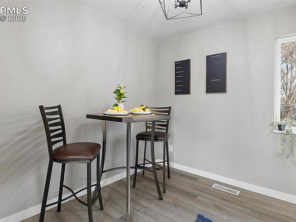 3BR, 2BA bi-level home located off the Powers Corridor in the Cimarron Hills neighborhood of Colorado Springs. Light and bright floor plan with LVP floors through most of the main level. As you enter the home, there is garage access off the Entry. Up the stairs, you’ll find a convenient coat closet, Living Room with large view window, a Dining Area off the Kitchen with a breakfast bar, and Galley Kitchen that features a pantry closet, ample wood cabinets, and solid surface countertops for kitchen storage and easy food preparation. Appliances include a dishwasher, smooth top range oven, vent hood, counter microwave oven, and side by side refrigerator. Two generous upper-level Bedrooms with neutral carpet share a Full Bathroom that offers a vanity, mirrored medicine cabinet, and tiled tub/shower. Downstairs, the Garden Level provides a spacious Family Room with neutral carpet, great for relaxing and watching your favorite movies or TV shows. There is a large Mechanical Room with washer/dryer hookups, cabinets, and a window, and a private 3rd Bedroom and Shower Bathroom for guests or in-laws. Extra deep 1-car attached garage, Lots of potential to build your very own backyard oasis in the spacious fenced backyard that includes a storage shed for tools and toys. Ideally located, this home is close to schools, parks, and St. Francis Hospital. Enjoy restaurants, shopping, and entertainment along the Powers Corridor. Easy 2-mile commute to Peterson Space Force Base. This home is ready for new owners to make it their own and create lots of lasting memories in it for years to come!