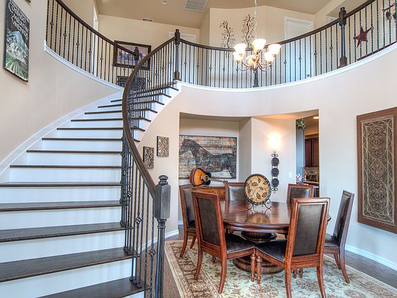 Jazzy, like-new 2-story home conveniently located in a fresh/new neighborhood a short distance from the junior high & Ute Park. Architecturally dramatic, the home features a 2-story foyer, a circular staircase overlooking an open oval dining room & premier outdoor living areas. The heart of the home is the main level great room that has a gas fireplace and opens to the grand kitchen w/slab granite counters, stainless appliances, big center isle w/counter seating, casual dining area, butler pantry & big walk-in pantry.