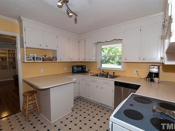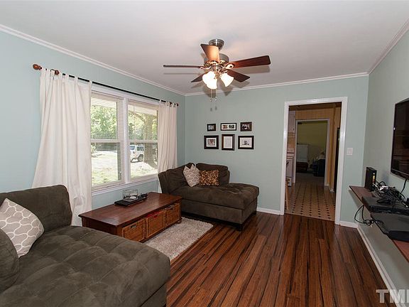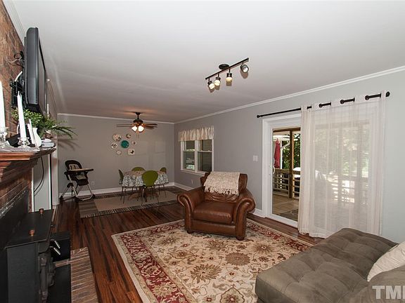 Immaculate brick ranch home, lovely Bamboo hdwds thru out most of home 2013, built in bookcase in foyer, formal living, family rm features a masonry FP w/wood stove insert & access to the large rear porch & deck. Cook friendly kitchen w/new SS dishwasher. Master has private full bath. Roof & windows 2012. New siding 2014. Attached, garage, attached carport, additional 28x21 detached RV/carport, 2 storage sheds, lrg fenced yard. Convenient to Schools, Hwy 64, Davis Dr Park, Wake Med, shopping & dining