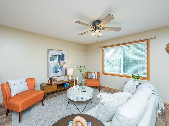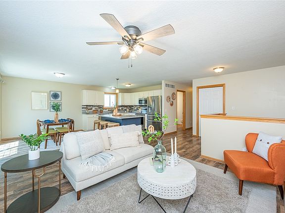 This affordable 5-bedroom, 3-bathroom home seamlessly combines comfort and convenience. The open floor plan on the main level features a living room connected to the dining area and an updated kitchen which has stainless steel appliances, quartz countertops, and a central island. The primary bedroom includes an ensuite full bathroom, while two additional bedrooms and another full bathroom complete the main floor. The lower level offers two more bedrooms, a third full bathroom with laundry (nearly new washer and dryer), and extra living space. The backyard is perfect for outdoor activities and gatherings, featuring a beautiful covered deck and patio ideal for barbecues and relaxation. Additional amenities include an invisible pet fence, an attached two-car garage with extra water hookups. Just a 3-minute walk from the Norwalk Aquatic Center and short walk to Norwalk's new Fairway Fields.