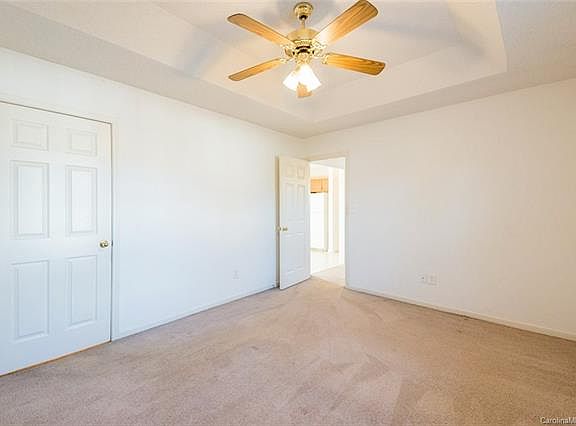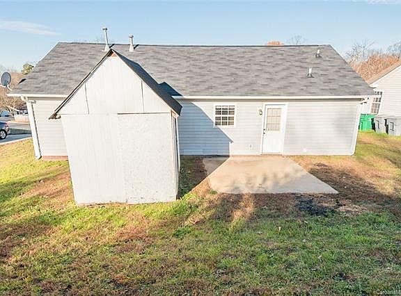 This Charlotte one-story home offers vaulted ceilings, master bath dual sinks, a master bedroom walk-in closet, and an open patio.