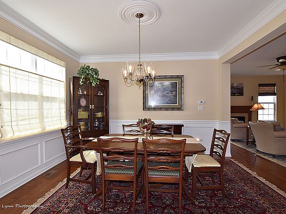 Enjoy three levels of living in this elegant townhome on one of the best lots in Bowes Creek that overlooks acres of wooded preserved land with water views!! This former model home has numerous upgrades: stairway with iron balusters, extensive trim, crown and panel molding, wide planked hardwood flooring on entire first floor, granite vanities, custom tile work, recessed lighting... Family room with cozy fireplace... Wonderful open floor plan... End unit! Granite kitchen with Stainless Steel appliances--dinette opens to upper deck and amazing views!! Master bedroom with sitting area and luxury bath---all bedrooms have volume ceilings and great closet space!! Quality finished deep pour walk-out basement, bath with body spay shower, and rec room that opens to expansive brick paved patio with fabulous year round views!!