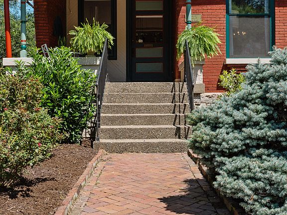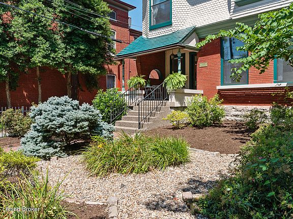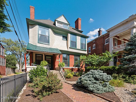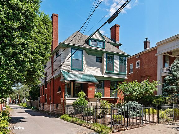 Welcome to 1217 Garvin Place, a unique and charming home situated on a tree lined street. Gated at one end, Garvin Place is a quiet oasis in the heart of the Old Louisville Historic Preservation District. According to records, the home was the sole Queen Anne style residence built in this district at the time. As such, it is rich in eclectic architectural elements that bring interest to every space of this 3-story home. The unique nature of this home is evident from the street - a gated front garden, interesting mix of materials, and the covered front porch with colorful turned posts and clever design that provides privacy from the alley. With over 3200 finished square feet, 4 bedrooms, 3 full baths, spread over 3 floors, this home lives large. As you enter the home, the foyer and picturesque staircase create a gracious atmosphere that allows you to envision welcoming your friends and family into your new home. Period details including original hardwood floors, millwork, paneling, and the gorgeous stairwell highlight the detailed craftsmanship that can be found throughout the home. The foyer opens into the sun-filled living room at one side, and also leads to the kitchen at the rear of the home. The living room opens into the dining room through functioning pocket doors. The spacious dining room is perfect for large dinner parties, with room for a 12-person table and finished with built-in bookshelves along one wall. In addition to an exterior door to the patio, off the dining room is a hallway that leads to a full bathroom and the kitchen. The updated kitchen features large windows, custom cabinetry, granite countertops with matching single slab granite backsplash, deep basin stainless steel sink, induction range, integrated Bosch dishwasher, and an appliance cabinet designed to keep your countertops clutter free. The stairwell features both formal front staircase and a utilitarian back stair that meet halfway up to the 2nd floor. Open to the 3rd floor and featuring large windows, this well-designed space is bright and airy. The second level includes three large bedrooms, all with decorative fireplaces and abundant natural light. A conveniently located laundry room, bathroom, and water-closet are located at the end of the hallway. The third level combines a sitting room with another bedroom that can also serve as a hobby or bonus room and features a large sink with butcher block counter. Both of these spaces also include decorative fireplaces and additional storage behind the knee-wall. The third full bathroom is adjacent to this space. A rare find for this area, the back yard is spacious and features a lush garden with brick patio, koi pond and a brick-paved walkway to the detached two car garage with room for an additional fenced parking space. Centrally located and near major thoroughfares, quick access to all that Louisville has to offer is just outside your front door. Schedule your showing of this impressive property today!