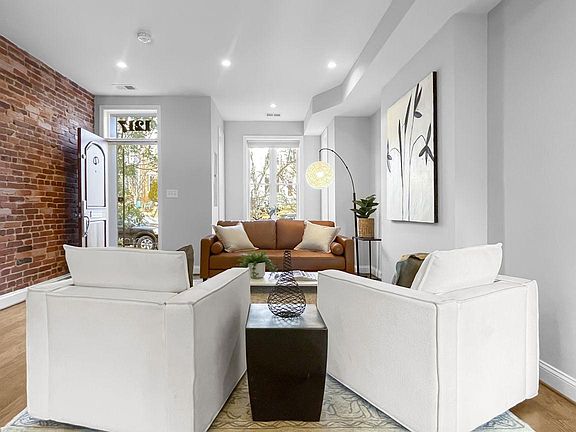 HISTORIC FACE, CONTEMPORARY GRACE — Tucked on a quiet, tree-lined one-way block, this 1887 Victorian rowhome facade conceals an IMMACULATE 2016 renovation, with transformation of the rear South-facing side with a gleaming glass wall! Step past the landscaped front yard into bright bay-front living room that flows seamlessly to a central dining area and PRISTINE quartz-and-marble kitchen basking in sunshine and overlooking fully hardscaped patio—perfect for cooking, dining and entertaining—plus secure parking/charging space. Up the exposed brick staircase to 3 BEDROOMS, 2 FULL BATHS, and laundry all on one level. The charm of the 19th century Capital out front, and modern, low-maintenance living with all the conveniences inside —and unbeatable access to dining, markets, and green space in every direction! Visit the open house SATURDAY or SUNDAY. Call for a private tour TODAY!