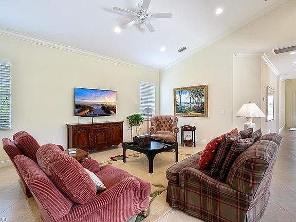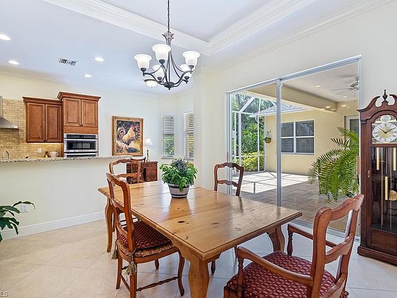 H.15937 - Wonderful 3 bedroom plus den home built in 2014. Move right into this meticulously maintained newer home with large rooms and unique floor plan. Crown molding and large neutral tile on the diagonal is found throughout all living areas. Stainless steel appliances and lovely granite grace the kitchen. Warm wood cabinetry with soft closing draws and lots of counter space for the cook. Open concept has a flex room off the kitchen and a separate den that closes off for extra office or another flex room. The lanai is centrally located to most rooms and there is a second private lanai for the master bedroom. The master bath has marble counters in a soft sophisticated palet. Separate shower has frameless doors and there is a soaking tub for relaxing after a long day. All bedroom closets have custom organizers and this home lives large. This desirable location is close to the beach, Murcato, casual & fine dining.