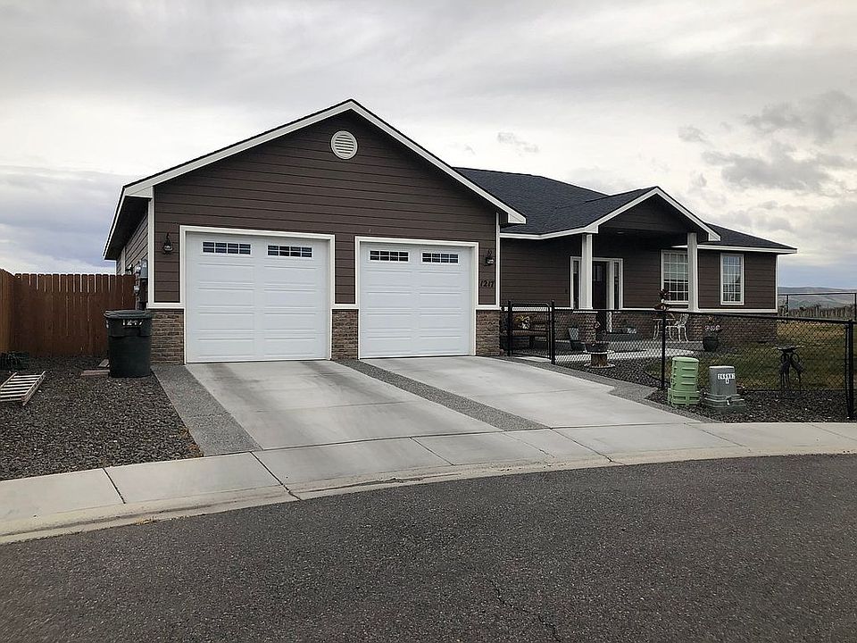 You will love this 1,974 square foot home, built in 2014. House is in a very quiet neighborhood that is located at the end of a cul-de-sac, just minutes from town and schools. Heading in the front entrance, you will be greeted by an open concept kitchen, pantry area, dining and living area, with a gas fireplace and ceiling fan, to hold all those great gatherings. Owned is a water softener and a Polyhalt water softener also and filtered water at the kitchen sink and to the refrigerator. A guest powder room is in the hall off the kitchen area. A door also leads to the Patio with a large fenced backyard, for all your grilling and fun. Entering the front, you can also go directly to a laundry area with counter space for folding and cabinets above the washer and dryer. A door from laundry room leads to the spacious two car garage. The huge master Bedroom is on one side of the house, featuring privacy, double sinks, 6 ft tub, and a large walk-in shower. A large walk-in closet off the master bath. A door leads from the master to a covered Patio is a great escape for a quiet moment. On the other end, are two bedrooms, each with their own walk in closet and they share a Jack-And-Jill bathroom. In the back yard there is a 10 x 24 shed with lofts on both sides for plenty of storage. The property has an in ground, timed sprinkling system and the entire property is fenced. The property has solar panels, installed in 2018.