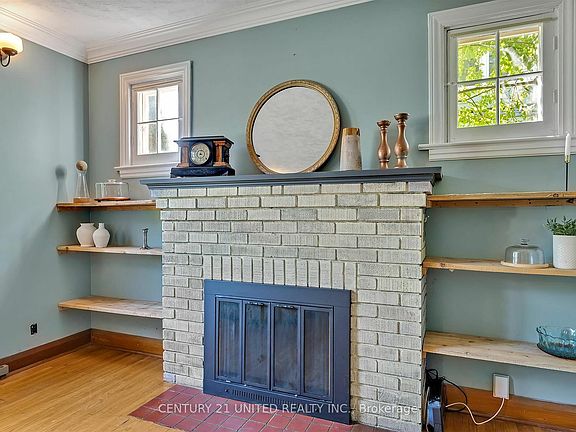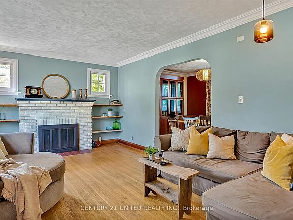 This solid 3 bedroom, 1 bathroom 2 storey brick home sits on a quiet cul de sac high above the city near the heart of downtown. This 1950s charmer has hardwood flooring throughout and much of the original woodwork and hardware has been preserved. Welcoming you off the foyer is a cozy living room with a decorative hearth, mantle and built in shelving. The freshly painted kitchen with new tile backsplash leads to the formal dining room. There are three generously sized bedrooms on the second floor, a four piece bathroom and an attic that opens up like the one in National Lampoons Christmas Vacation. The partially fenced backyard offers privacy and shade and includes the metal gazebo and patio table set. The detached single car garage can be accessed from the rear of the home off High Street.