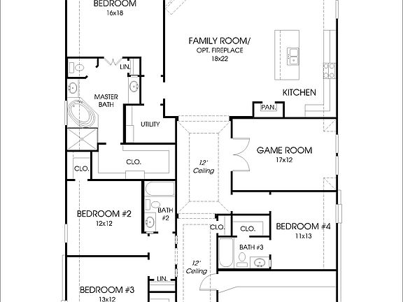 Mahogany front door. Entry with 12-foot coffered ceiling. Library with hardwood floors and game room, both with French doors. Family room with ceramic tile floor, a wall of windows and opens to kitchen and dining area. Kitchen features an island with built-in seating space and a walk-in pantry. Master bedroom with a wall of windows. Double door entry to master bath featuring a garden tub, separate glass enclosed shower, dual sink vanities and a spacious walk-in closet. Extended covered backyard patio. Two-car garage.