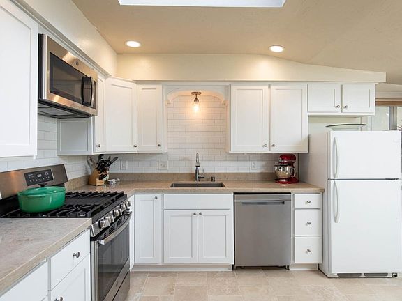 - Kitchen: Garbage Disposal, Microwave, Dishwasher, Oven Range - Gas, Refrigerator, Skylight, Countertop - Quartz