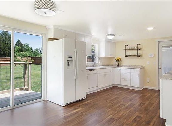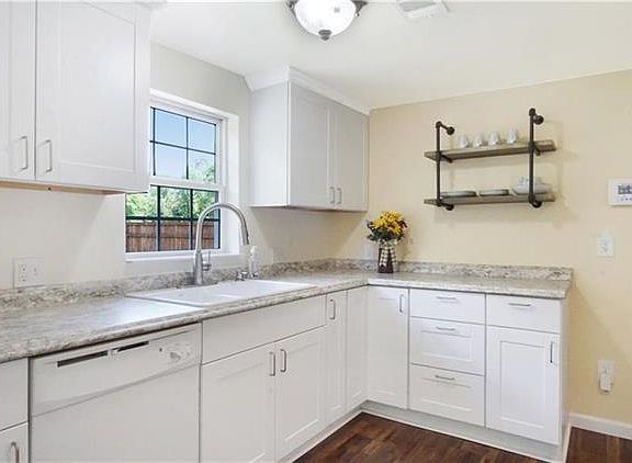 Complete remodel with beautiful flooring! Decorator-Perfect! Electrical and Plumbing upgrades. New drywall finishes. NEW lighting, bath and kitchen cabinets, appliances, wood floor, carpet, tiled shower, doors, hardware, tankless water heater, security system. 1050sf garage w epoxy paint floor. Garage hold 4 cars. Separate zone unit for garage.