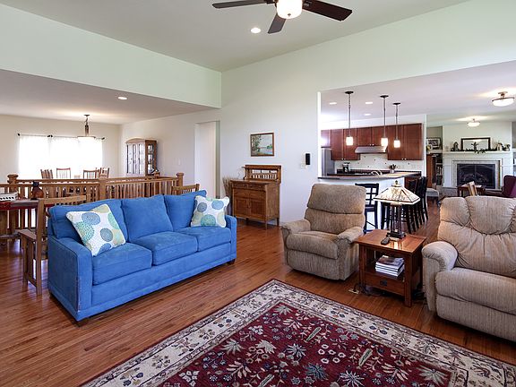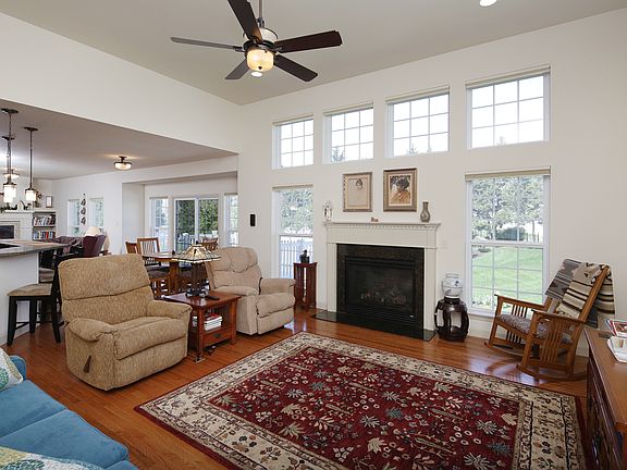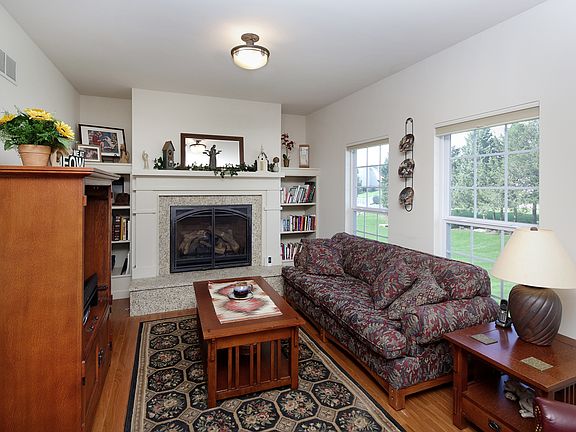 Beautiful 3 bedroom ranch built by Fischer & Frichtel is located on quiet cul de sac in Leighton Estates. This home features an open floor plan w/ lots of wood flooring & tons of light. The great room is spacious & features a gas fireplace, transom windows, recessed lights & 12 ceilings. Kitchen has 42 cabinets, quartz countertops, tile backsplash, pendant lighting, center island, breakfast bar & SS appliances. Adjoining hearth room has a gas fireplace & built in bookcases. Master bedroom suite features a large walk-in closet, raised double vanity, large tub & separate shower. Additional features include composite deck, 3 car garage, concrete driveway, professional landscaping, walk-out lower level, stamped patio, 2 panel doors & inground sprinkler system.
