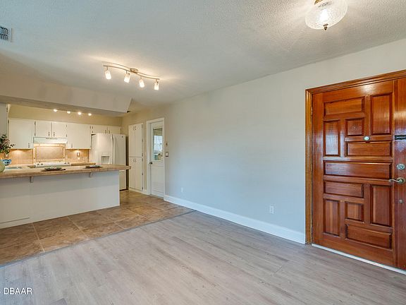 Updated Gem in Desirable Fairway Estates! Lovely 3 bed, 2 bath home with open kitchen design. Freshly painted and ready for new owners! Neutral laminate gray floors flow seamlessly throughout. Large great room and freshly updated kitchen with tile, track lighting and full appliance package. Primary suite boasts remodeled walk in shower and new vanity. French Doors lead to your large enclosed patio and sprawling backyard. Storage galore in your 2 car oversized garage and utility shed. Located in Daytona Beach, close to universities, hospitals, shopping and so much more. All information recorded in the MLS is intended to be accurate but cannot be guaranteed.