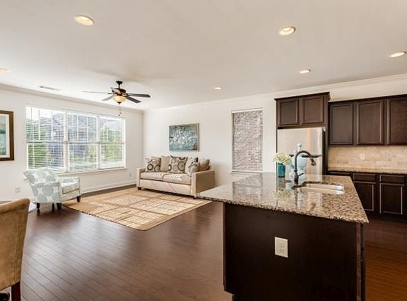 Amazing floor plan on this End unit. Covered front porch creates beautiful outdoor enjoyment. 3 Bedrooms/2 Living spaces/2 baths + 2-half baths,full sized laundry room & an office + 2 car garage. Extra closets for storage as well. Granite counters, hardwood floors, and freshly paint make this home a 10! Amazing location. Priced under appraisal.