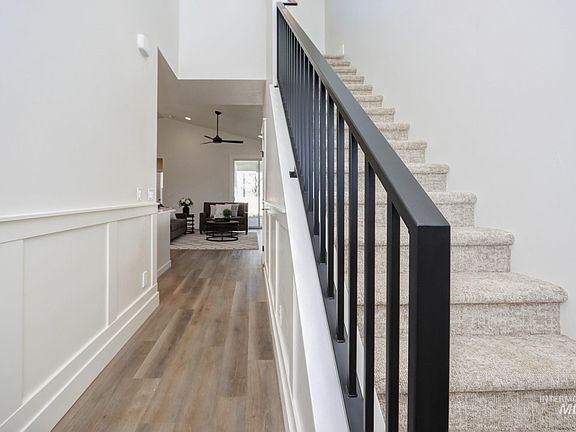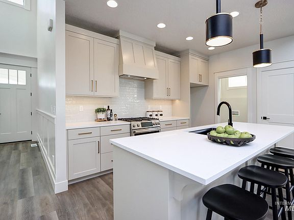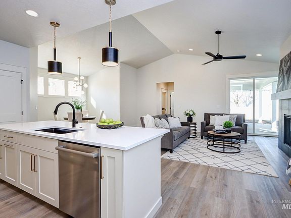 Move in READY, photos are of this home includes private a fenced yard w/ HUGE patio! Location, Location--Live here and experience the best of EVERYTHING, when owning a Venta home and low maintenance living. . Meridian's newest, most convenient community located minutes from shopping, restaurants, health club, entertainment, movies, medical facilities, I-84, The Village at Meridian is only 1/2 mile away. The main level primary suite includes a variety of sized windows, 2 bed walls! plus the spa bath with its walk in tile shower and another window! The kitchen is complete with stainless steel appliances, butlers pantry & generous island. The central location of the office/tech/zoom room is an ideal space for hybrid work, homework. Stunning interior architecture as seen varied ceiling heights, windows galore and dramatic and extensive moldings. ALL cabinetry is custom built— soft close doors and drawers.. Quartz, Tile & LVP surfaces throughout. The garage comes finished, insulated with a keyless entry opener.