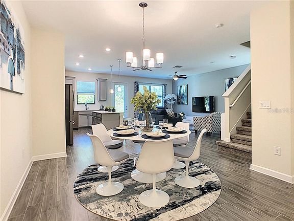 The luxurious townhouse unit features four spacious bedrooms, plus three and one-half bathrooms. The foyer leads into the dining room which overlooks the great room. There is an appealing patio perfect for relaxing and enjoying the scenic community. The kitchen has slate stainless steel appliances and quartz countertops. A large master bathroom and closet. The home as a ring video doorbell and WiFi boosters to make sure a strong internet signal anywhere in the home. ** Furniture is not included** Close to the Omni Resort and Champions Gate golf courses, with clubhouse including restaurant and bar. The community offers a pool, spa, workout room, and clubhouse to relax and enjoy. A short distance to the shops' restaurants and grocery stores in Champions Gate Village.